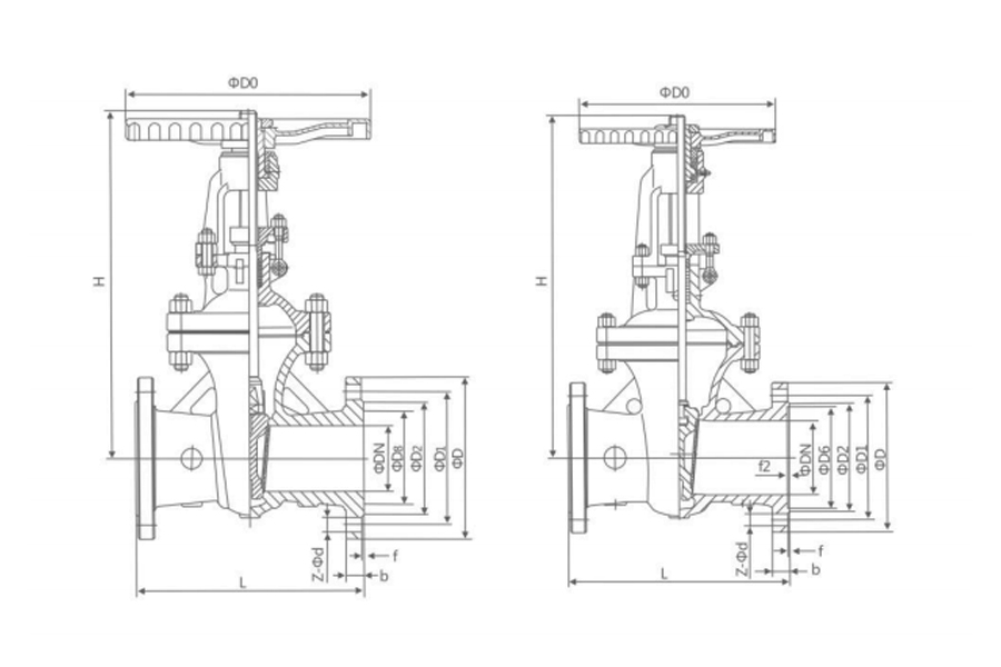 | L | D | D1 | D2 | D6 | b-f | f1 | Z-φd | H | D0 | ||||||||||||||